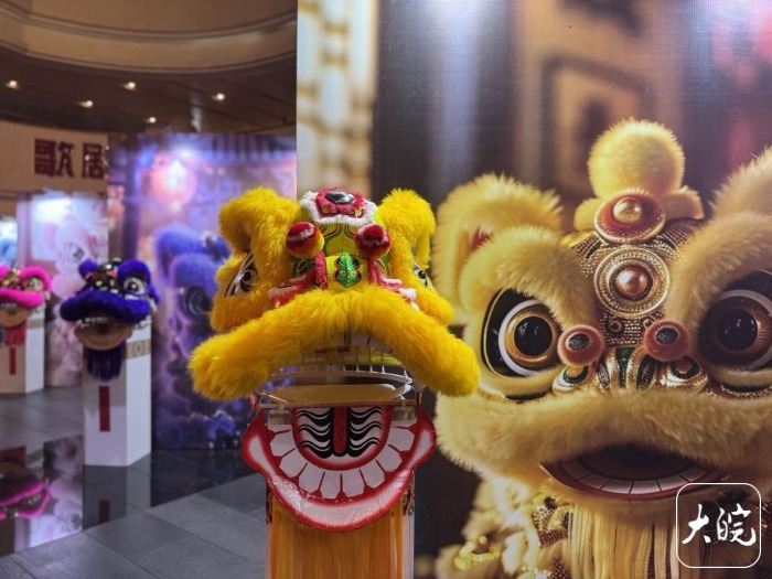 非遗版春节主题展区,“年夜饭”热闹“开席”;五色狮子吉祥迎客;戏曲打卡点,徽剧、黄梅戏、庐剧、泗州戏、花鼓灯等戏曲行头引来众人打卡。