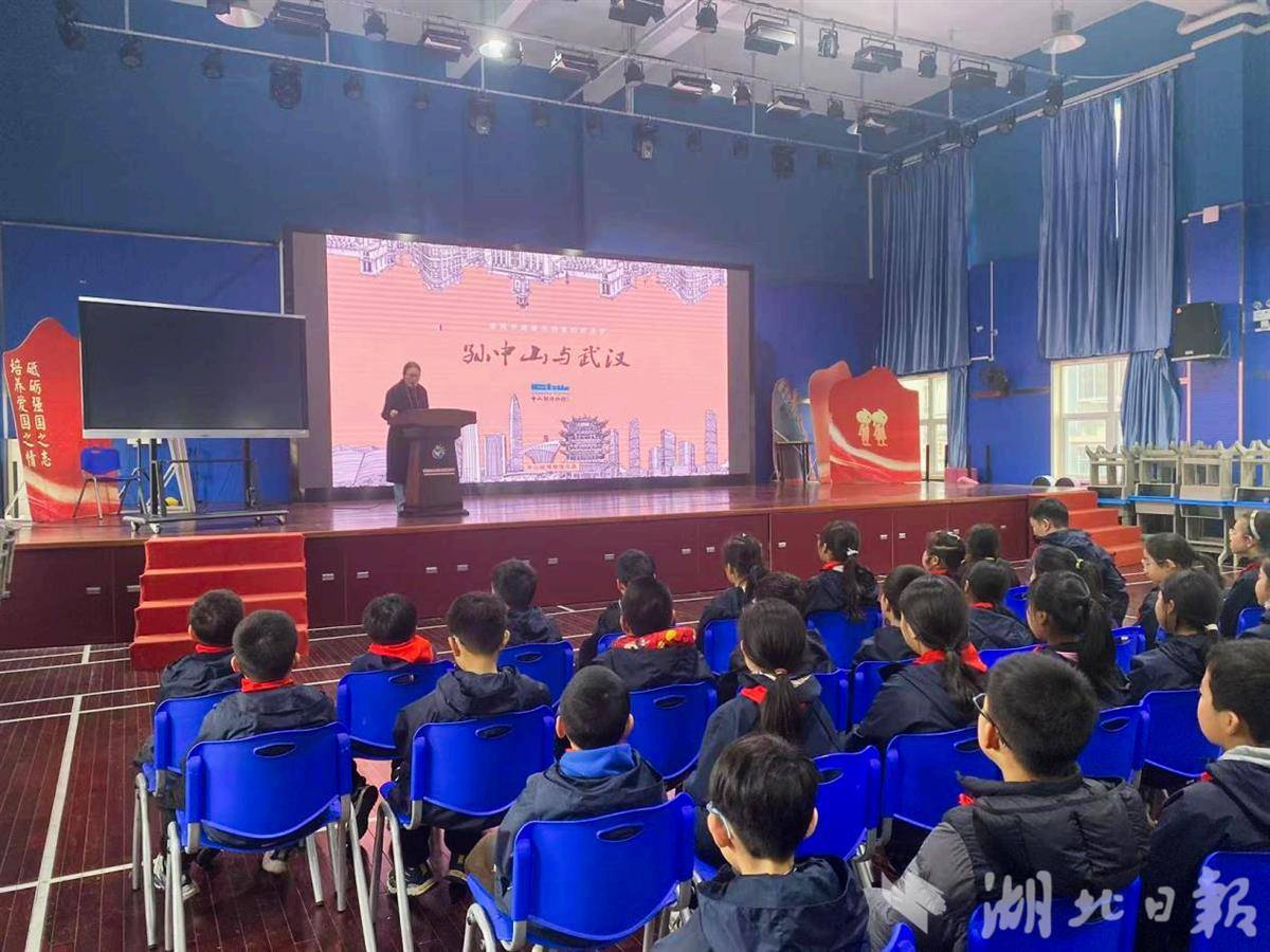 在硚口区实验小学、江夏区金口中学,中山舰博物馆带去了生动的互动课程《孙中山与武汉》。社教老师以“武汉有哪些地方和孙中山有关”为启发,逐步展开讲述。通过历史档案展示和互动问答,带领学生们了解孙中山先生与武汉的深厚渊源。从辛亥革命首义之地的历史抉择,到《建国方略》中构想的“武汉现代化蓝图”,学生们在影像与故事中感受到孙中山先生“振兴中华”的毕生追求。