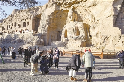 来自五湖四海的游客在云冈石窟游览,感受世界文化遗产的独特魅力。数字技术让云冈文化遗产之美得到更广泛的传播。本报记者韩堃摄(资料照片)
