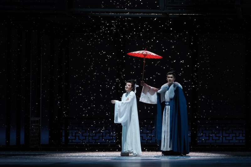 原创歌剧《桃花扇》和京剧《花甲知县冯梦龙》则实现了“守正”与“创新”的双轨并行。前者对清代传奇剧本《桃花扇》进行歌剧化创作在西方艺术的载体上,完成了中国式审美的再创造;后者以江苏文学巨匠冯梦龙在福建寿宁任知县时的治理事迹为背景,在保留京剧本体的基础上,对唱腔、形体结构等进行重新编排。