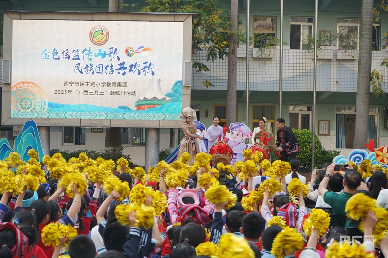 央广网南宁3月25日消息(记者梁瑜琳见习记者张显)3月24日,南宁市民主路小学教育集团开展2025年“金色摇篮传山歌民族团结共欢歌”广西三月三赶歌圩活动,在童声飞扬中播撒民族团结的种子,铸牢中华民族共同体意识。