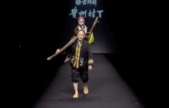 中国国际时装周上,爷爷唱着民谣,用老木犁扛着孙女走上T台的一幕,让无数观众动容。