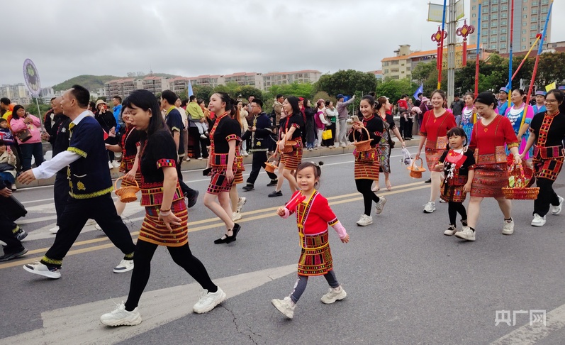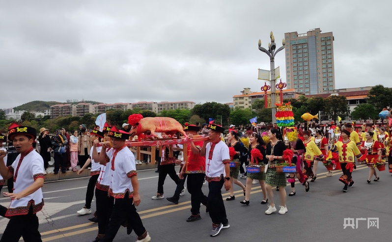 “三月三”是海南黎族苗族同胞悼念祖先、喜庆新生、赞美生活、歌颂英雄和青年男女追求爱情的传统节日。开幕结束后,由白沙全县11个乡镇方队和黎旗方队、乡村振兴方队、候鸟人才方队、黎药方队组成的共15个巡游方队沿着巡游路线欢歌载舞、铿锵前行,与各族人民相约相会相聚、交往交流交融,共襄朴素纯真而深厚久远的民族情谊。