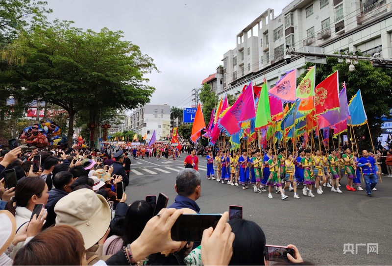 “我们早晨五点多从海花岛出发,专程赶来拍摄巡游队伍,这太壮观太美了。”旅居海南的王先生端着相机咔咔拍个不停,生怕错过最美瞬间。从四川到白沙定居的市民方艳说:“为了今天的节日气氛,我特意穿上精心挑选的汉服,红色喜庆。”