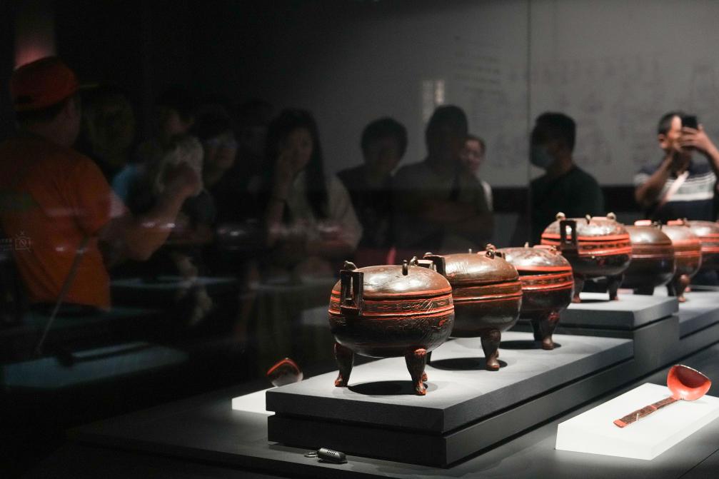 游客在湖南博物院长沙马王堆汉墓陈列展厅观赏漆木器。新华社记者薛宇舸摄