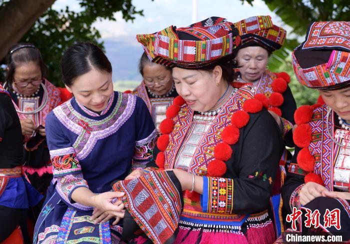 图为瑶绣技艺代表性传承人盘海燕指导绣娘刺绣。文俊锋 摄