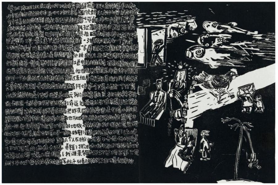 策展人之一、多伦现代美术馆副馆长顾佳君提醒,此次展览上呈现出一个有趣的现象,就是来自意大利的艺术家的版画作品趋向于传统,平面作品以及创作手法基本都是铜版、木版,而中国艺术家作品多在材质和手法上有探索和突破。比如,艺术家潘黎的作品《剧场系列(凸)(凹)》,在平面版画的基础上制造出凸和凹的形状,随着观众的脚步移动,视觉错觉会让人感觉到画面似乎在不断变化,形成小剧场效果。即使是传统的木版画,在题材上也有探索,比如,陈海燕的版画作品利用了木质的肌理,用版画文字呈现自己的梦境。细看这些字,会发现艺术家是用毛笔直接写于板上再用刀修。还有一些成名当代艺术家的版画尝试。比如雕塑家隋建国的作品以记录时间为题,却制造出了波洛克抽象绘画效果。