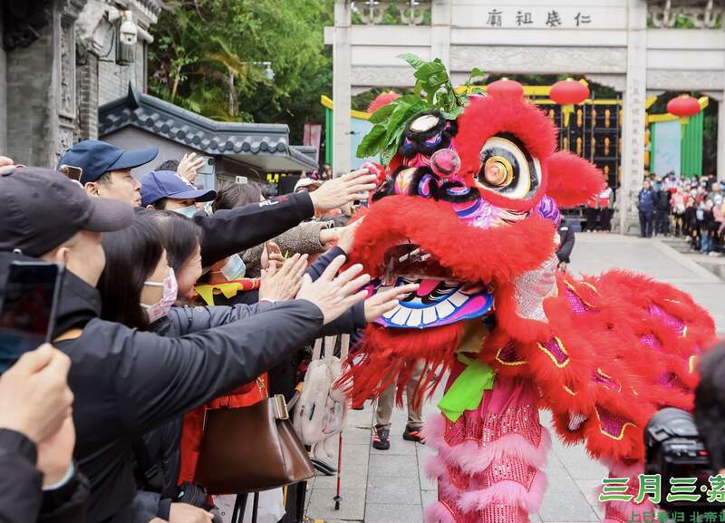 “三月三,临水祓禊”仪式上,10多位汉服佳人从文塔祈福归来,为现场嘉宾以兰草净水洗去尘埃,呈现古时祓禊场景。最后,泮塘村长老们上台进行醒狮点睛及切烧猪,祈愿风调雨顺、福泽绵长。