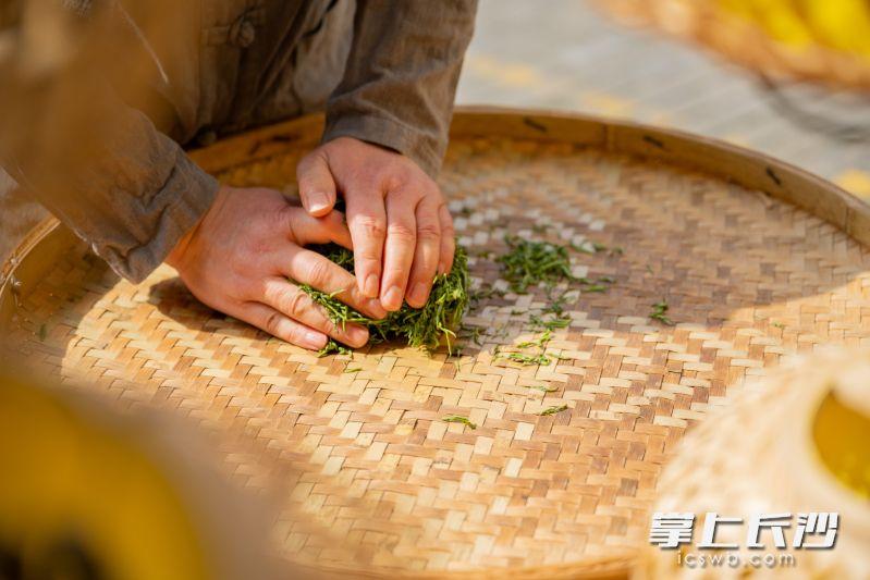 金井绿茶制作技艺展示台前,几位年轻人小心翼翼地将手掌贴近锅底,在代表性传承人的指导下学习“抖、压、揉”的手法,感受茶叶在掌心逐渐卷曲、收拢的神奇变化。“看似简单,实际烫手又费力,但闻到茶香的那一刻,特别有成就感!”游客王先生捧着微微焦香的茶芽说道。