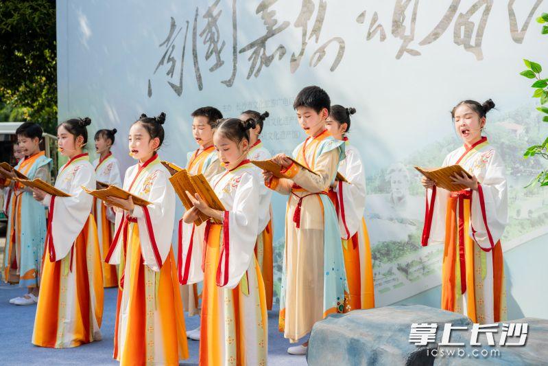 湘剧戏歌巧妙地将湘剧高腔与《橘颂》的韵律相结合,长沙市湘剧保护传承中心青年演员周帆的精彩演绎,让古老诗篇与戏曲艺术碰撞出璀璨的火花。与此同时,学生们饱含深情地诵读《橘颂千年韵》,用质朴而真挚的声音,传递经典的力量,淋漓尽致地展现湖湘文化的深厚底蕴,引发现场观众的强烈共鸣。