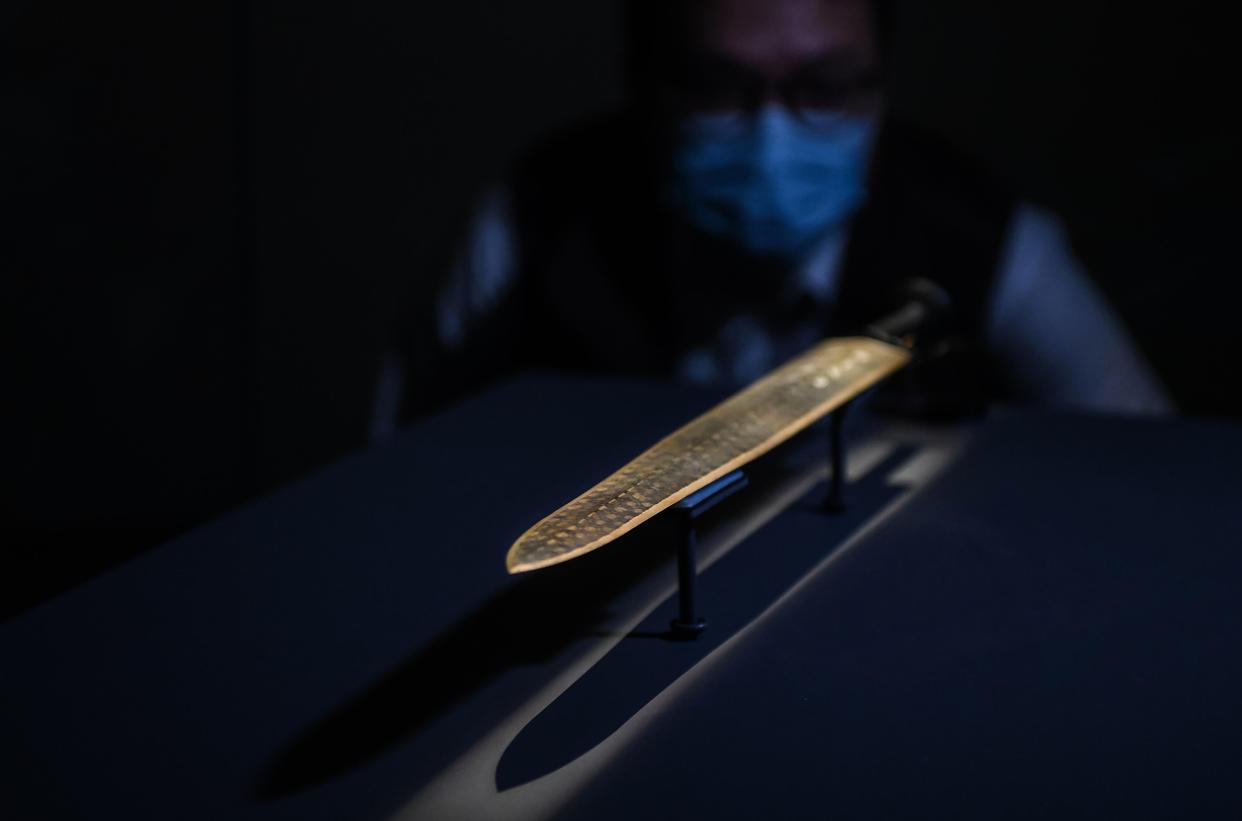 湖北省博物馆的越王勾践剑。新华社记者 程敏 摄