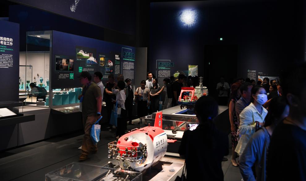 “博物馆里展示深海装备,难得一见!”一位游客注意到,“探索一号”“探索二号”科考船和“深海勇士”号载人潜水器模型先于文物呈现。“是各类深海装备为考古学家开拓了‘最后一片疆域’。”讲解员说。
