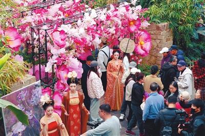 当唐代画家周昉《簪花仕女图》中的古典之美与法国印象派大师莫奈的自然光影美学相融合,是一场怎样的跨越时空与文化的诗意对话呢?4月6日,在沈阳植物园上演的“春天花正开,簪花踏春来”——簪花仕女带您游沈阳活动中,游客和市民们在真人版的“簪花仕女图”和莫奈的“自然画卷”中感受到了绝美的意境,也不禁为沈阳文旅这次极富创意的活动而连连点赞。