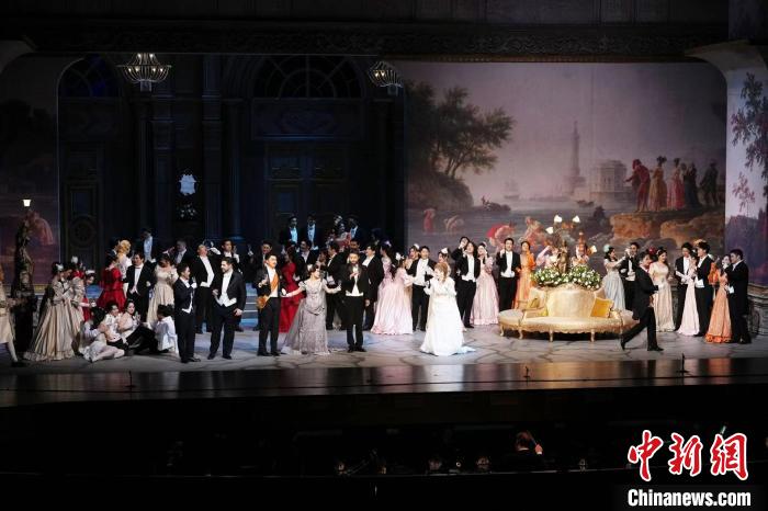 上音歌剧院与萨翁林纳歌剧节联合制作的威尔第歌剧《茶花女》。 中新网记者张亨伟摄