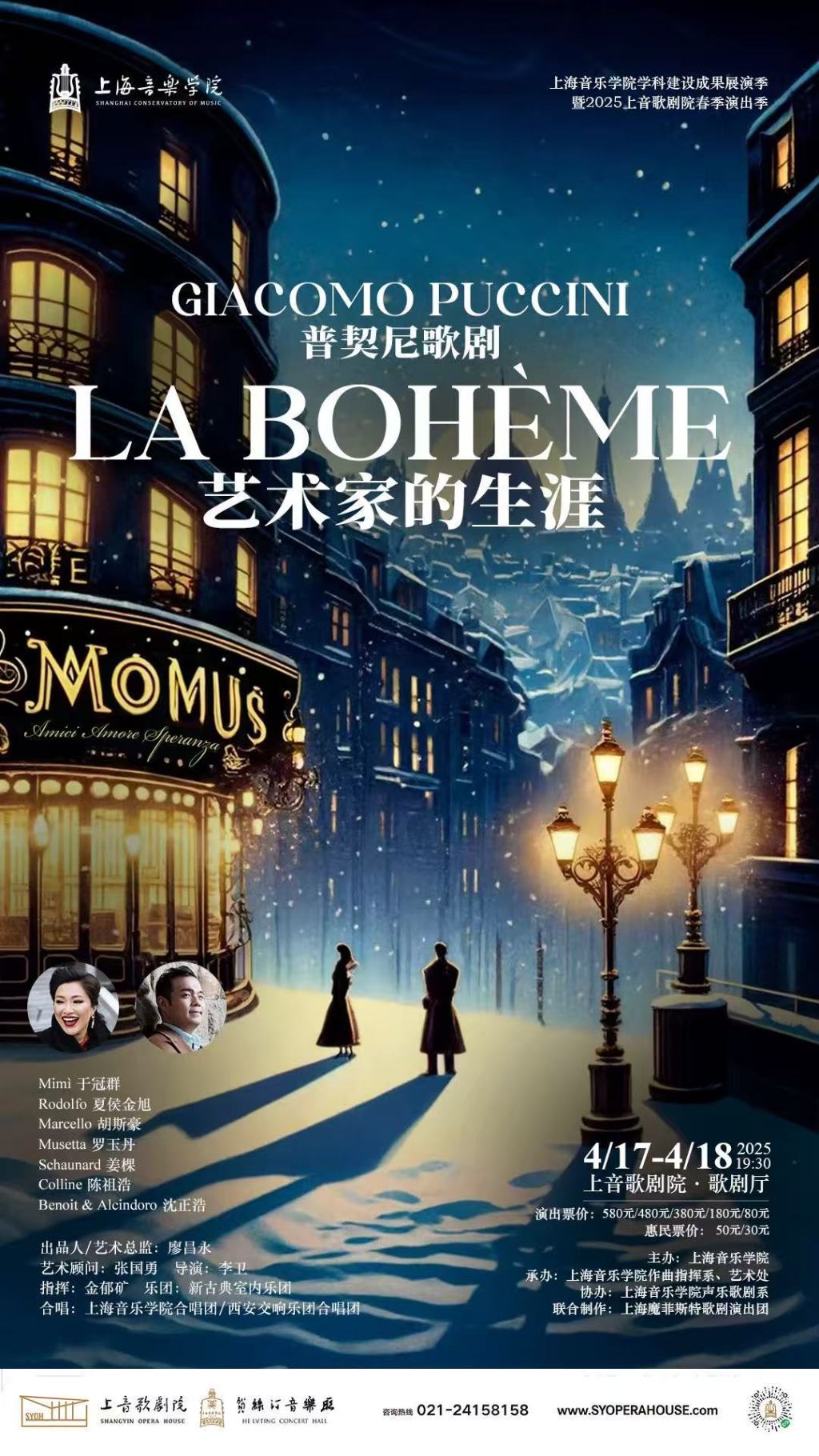 4月17日-18日,普契尼歌剧《艺术家的生涯》(又名《波西米亚人》)将点亮上音歌剧院,剧院将化作塞纳河畔流动的盛宴,再现巴黎街头的烟火气息。