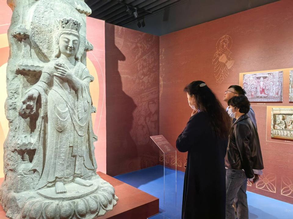 “前几天我看到潍坊市博物馆发的公众号预告,对此次展览感到非常期待。本来我都打算好今天出去旅游了,但实在不想错过开展,就还是来现场了。”潍坊市民李先生说,自己大约在七八年前去大同看过云冈石窟的展览,当时就觉得非常震撼。这次能在自己家门口看感受完全不同,感觉更亲切也更欢喜。