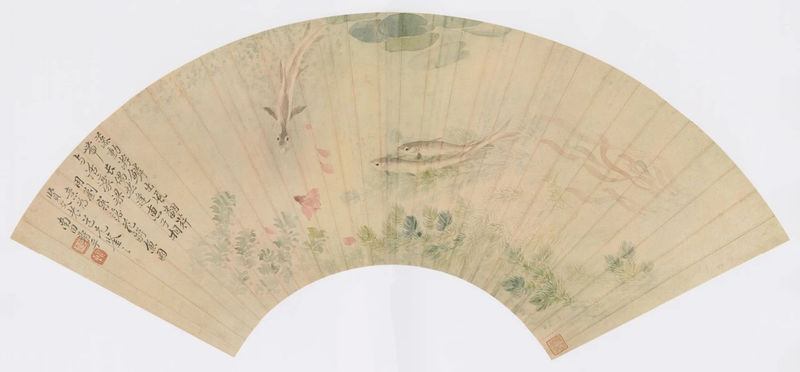 清恽寿平《落花游鱼图扇页》