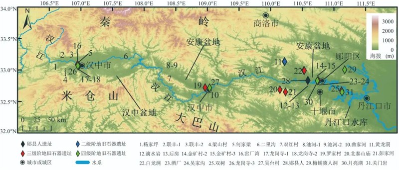 汉江中上游地区T2、T3和T4阶地上已发现的旧石器遗址