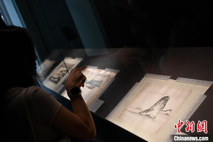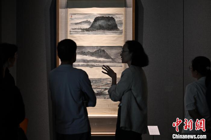 4月29日,“删繁就简开新境:广州艺术博物院藏黄般若山水作品展”展出的《香港山水图》吸引参观者。近日,该展览在广东省广州艺术博物院(广州美术馆)开展,展出黄般若50余件(套)山水作品,呈现他从传统中探索创新的艺术成就。 中新社记者陈楚红摄