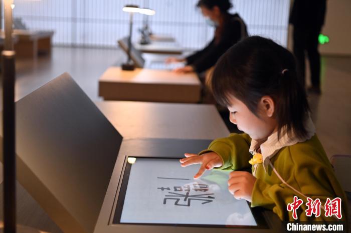 图为游客在甘肃简牍博物馆体验数字书写。 中新社 记者 九美旦增 摄