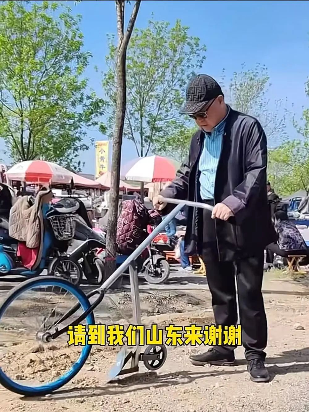 大集上,莫言尝试拿犁,“当年我在农村是没有的,只能是用牛拉的,现在他们换成了一个胶皮轮子,推起来特别轻松。”莫言谈到了现在的大集和以往的不同之处,“过去我记得麦收之前,小鸡都是有人用两个大笼屉挑着沿街叫卖,现在他把小鸡染成了各种彩色的、鲜艳的颜色,还有各种各样的小狗。总之现在的大集真是物资极其丰富。过去的豆腐磨子要用人推,现在跟三轮车的小电机连接在一起,就非常省力了。”