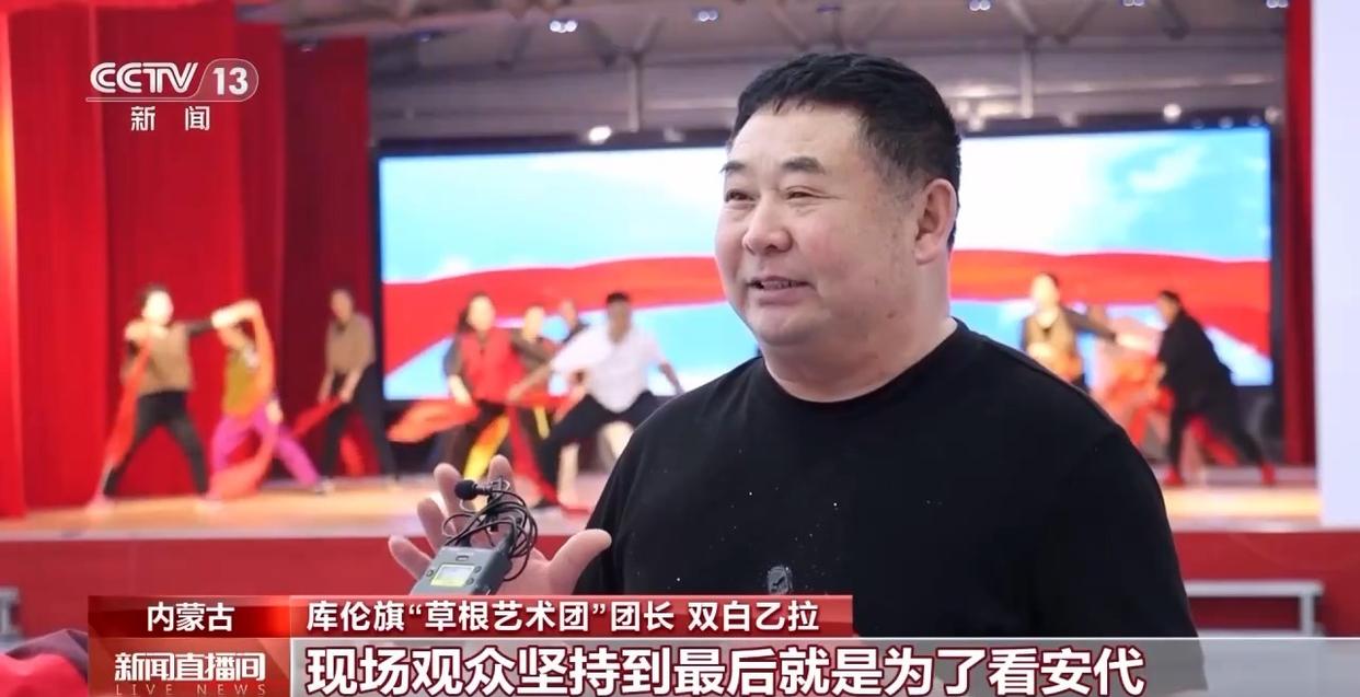 库伦旗“草根艺术团”团长 双白乙拉:咱们这儿小孩、大人、老人都喜欢跳安代、看安代。特别是每次节假日,或者有大型活动,都是以安代舞为压轴戏,现场观众坚持到最后就是为了看安代。