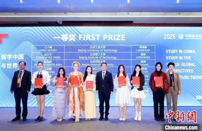 4月11日,王安娜(左二)在第八届“我与中国的美丽邂逅”征文大赛颁奖典礼上。 (受访者供图)
