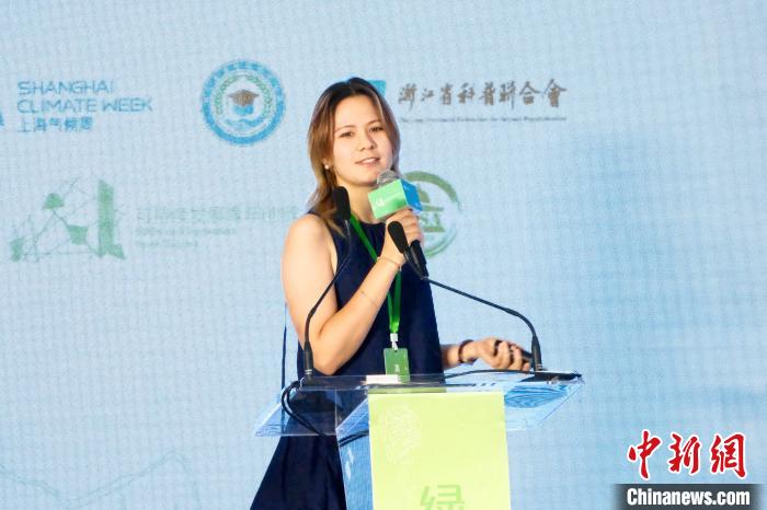 2024年7月26日,王安娜在2024可持续发展青年创辩大会(海外)暨伦敦大学学院中国论坛演讲。 (受访者供图)