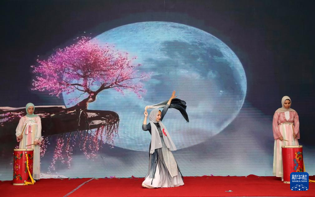 5月17日,在埃及开罗,参赛选手进行才艺展示。新华社记者 王东震 摄