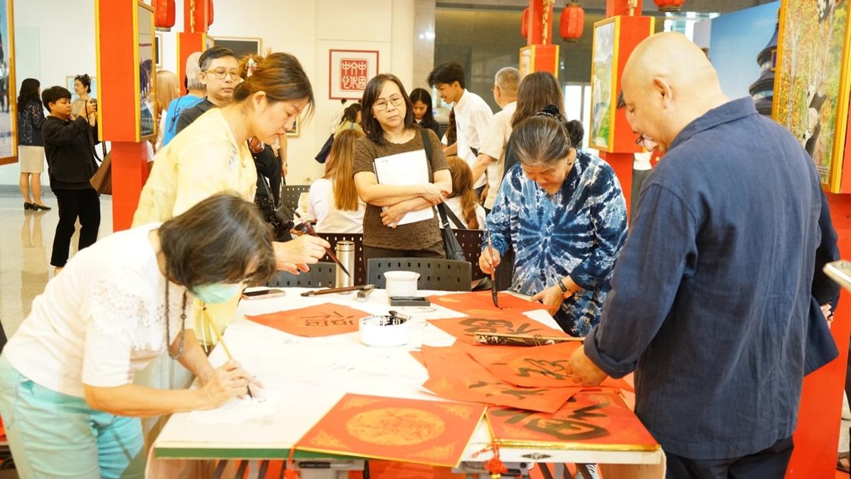 泰国观众学写中国书法。曼谷中国文化中心供图