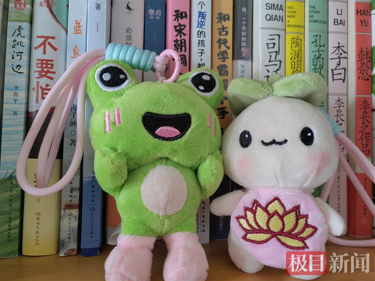 极目新闻记者了解到,“蛙噻”以青蛙为原型,身披绿衣,象征着探索科学奥秘。而“哇藕”以湖北特色物产莲藕为原型,头戴荷叶帽、身穿莲花装,象征着疗愈心灵的力量。捏一捏它们,它们分别会发出“蛙噻”“哇藕”的童声,要将人的心萌化了。