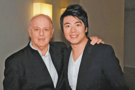 工作室收藏的照片中,时间的河流淌过,下一张照片是留着寸头的郎朗与另一位恩师格拉夫曼教授在卡内基音乐厅的合影。1996年,14岁的郎朗考入著名音乐学府美国柯蒂斯音乐学院,师从享誉世界的钢琴家、教育家加里·格拉夫曼。“格拉夫曼大师让我走向了国际。”郎朗说着,目光转向旁边他与传奇钢琴家、指挥家丹尼尔·巴伦博伊姆的照片,“巴伦博伊姆大师带我真正认识并学习了贝多芬、舒伯特等作曲家留下的最杰出的作品,把我引向了艺术与人生的又一个台阶:音乐不仅是技艺的展现,更是思想的表达。”
