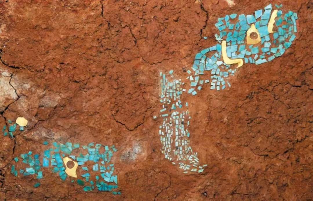 我国目前所见最早的绿松石镶金饰件。盘龙城遗址博物院 供图