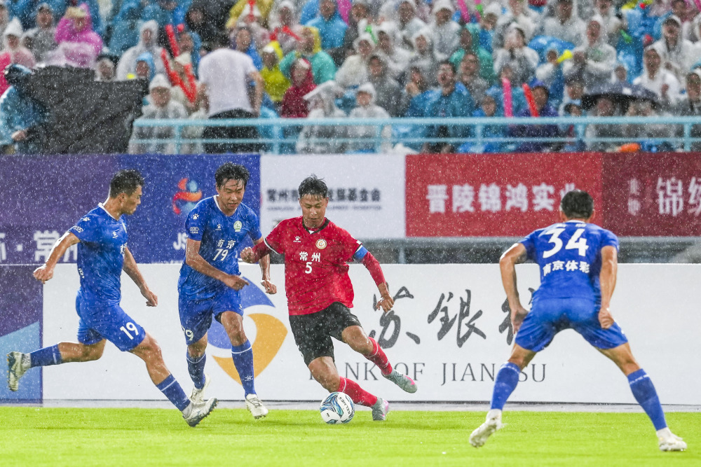6月21日,在江苏省常州市举行的2025江苏省城市足球联赛第五轮比赛中,常州队主场0比4不敌南京队。新华社记者 李博 摄