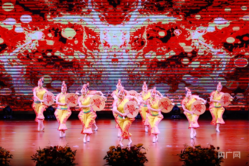 王娟与队员们表演怪村太平鼓(央广网发丰台区王佐镇供图)