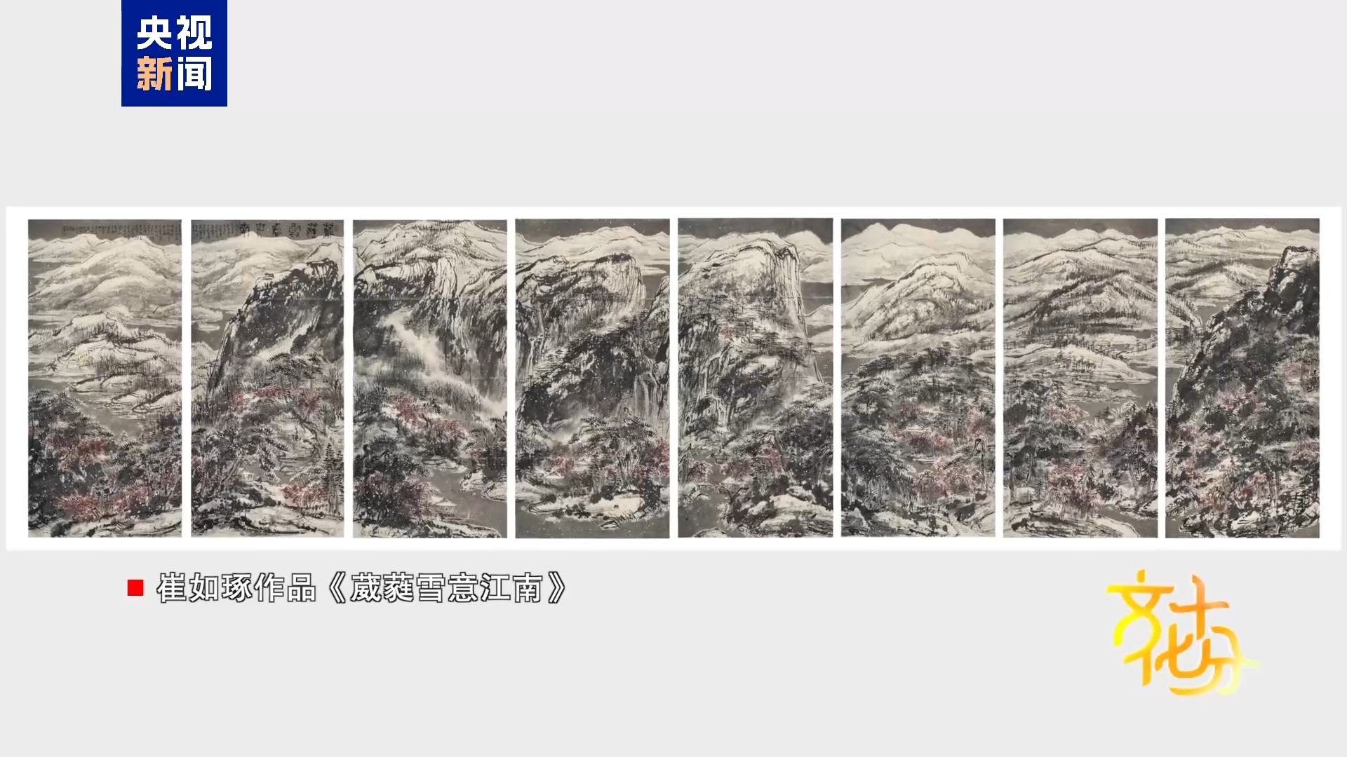 故宫学院中国画研究院院长 崔如琢:《葳蕤雪意江南》这张画应该是十年前画的。中国画里讲意在笔先,我认为还要意在笔后、笔随情走。祖国名山大川的这种气势,也象征着我们中华民族,要把中华民族的气势画出来。