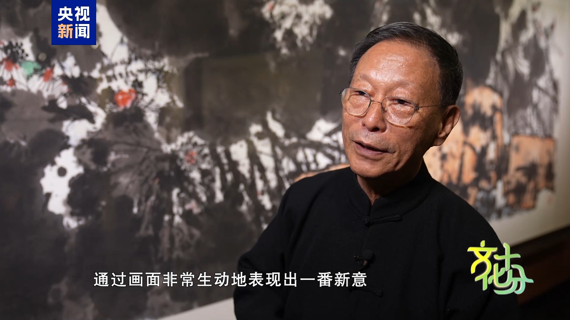 中国艺术研究院写意画院艺委会主任 吴悦石:他的笔墨修养,经得起岁月的推敲。比如说这一张画,很少有人有这个胆量能铺天盖地取一个构图,他巧妙运用笔墨,通过画面非常生动地表现出一番新意。