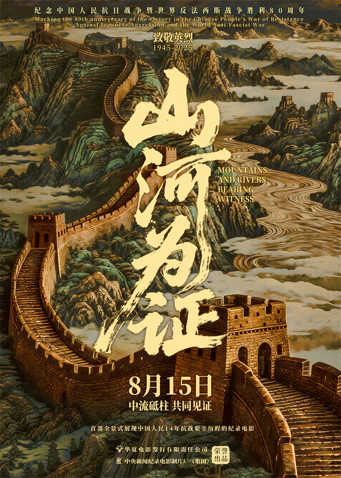 在纪念中国人民抗日战争暨世界反法西斯战争胜利80周年的重要历史时刻,纪录电影《山河为证》正式宣布定档,将于2025年8月15日登陆全国院线。影片由华夏电影发行有限责任公司与中央新闻纪录电影制片厂(集团)出品,同步发布定档版海报。