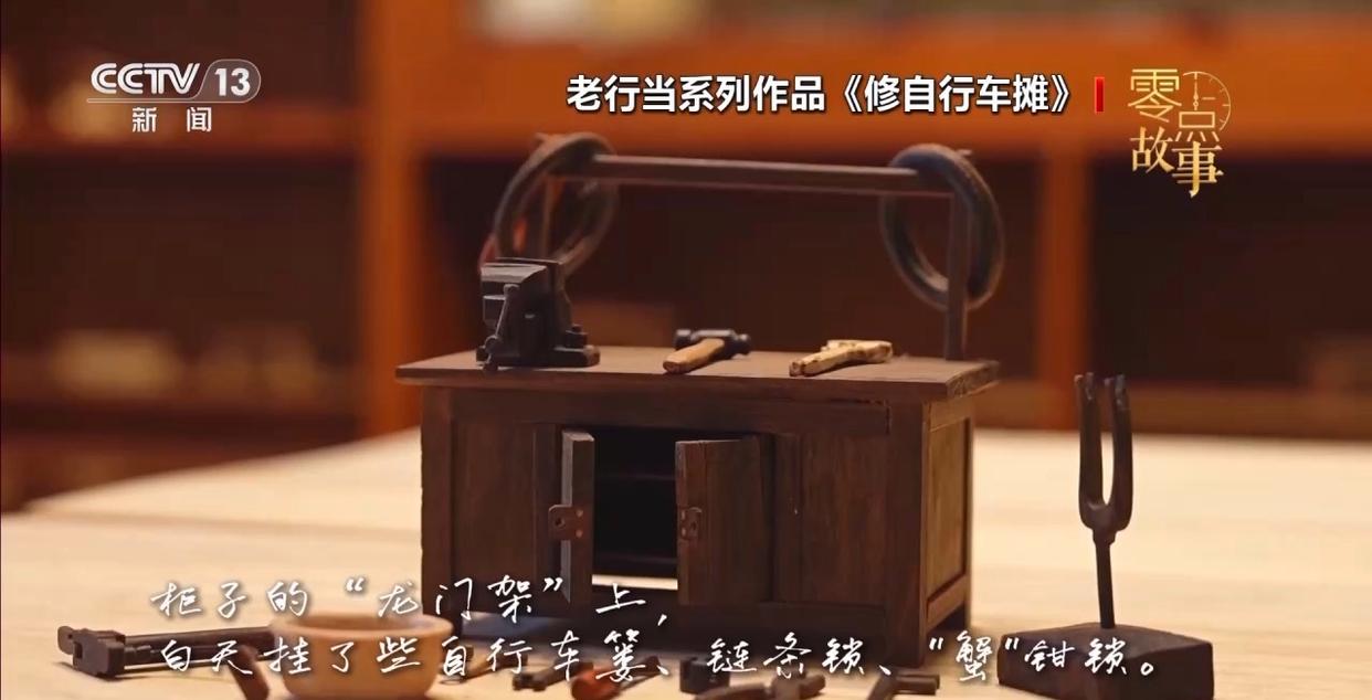 他的作品,全靠榫卯结构拼接木构件,也没有过于精细的打磨和涂彩。一晃十多年过去了,陈老做出了“黄土地”“南京老行当”和“市井烟火”三个系列共两百多件套微型木作,让那些消失的时光在指尖重新“活”过来。