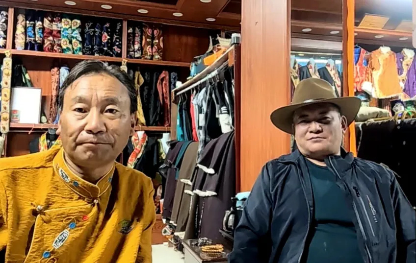 多杰南杰(右)接受每经记者独家视频采访,华旦(左)协助翻译图片来源:受访视频截图
