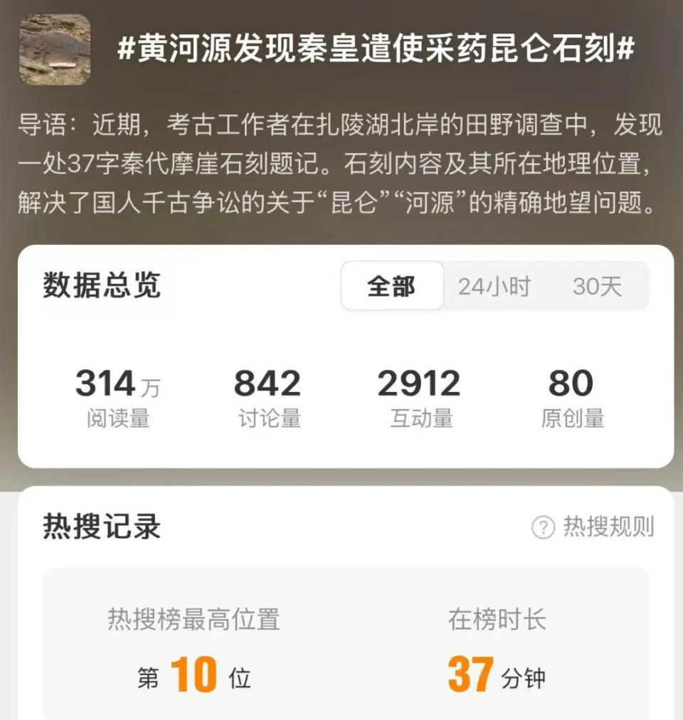 同时,“昆仑石刻”也从圈内火到圈外,在热搜话题后面,公众纷纷通过评论参与到“考古”中来。