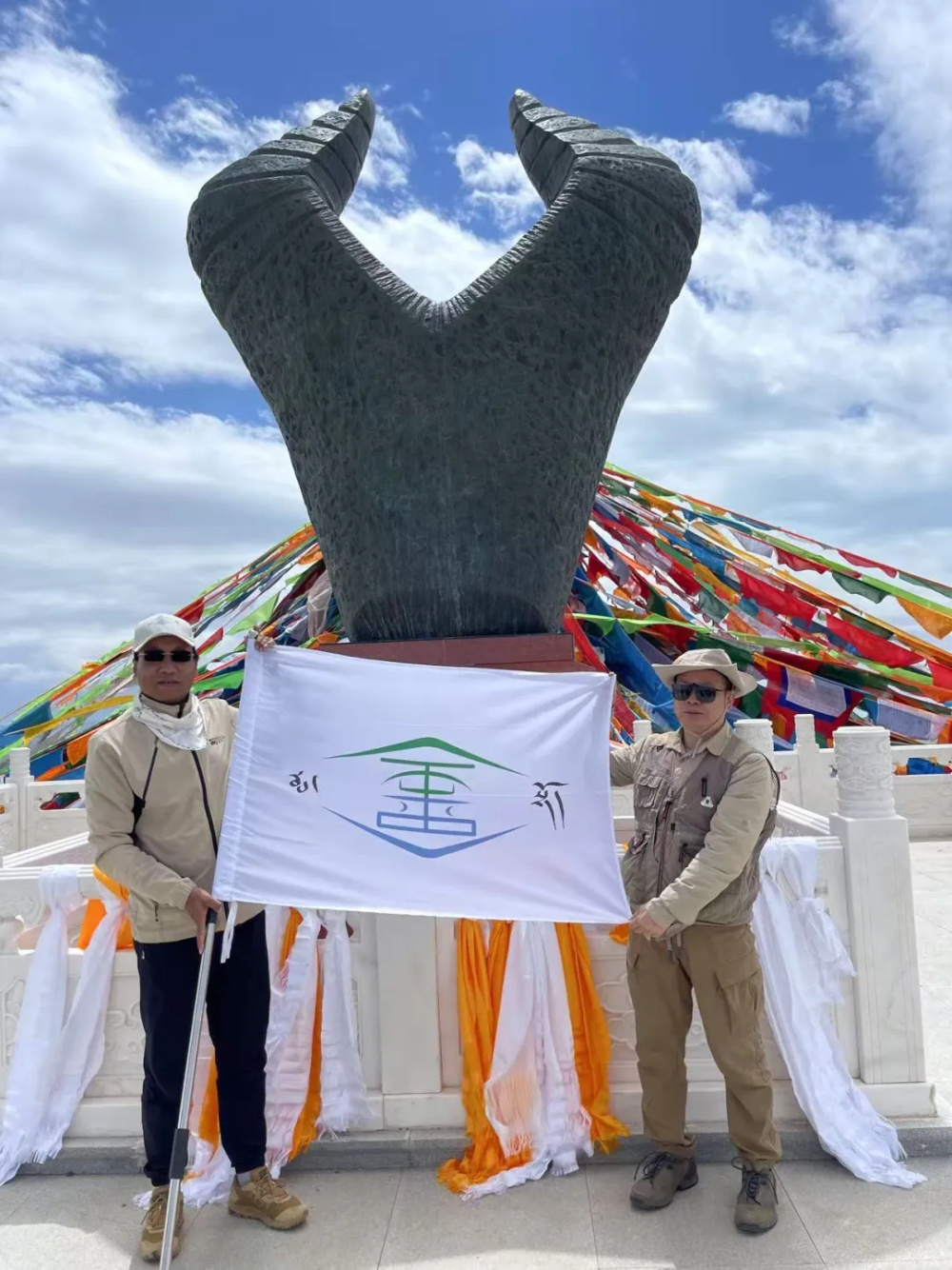 华旦(左)陪同仝涛考察完“昆仑石刻”后合影图片来源:华旦