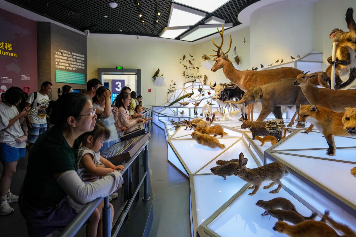 7月15日,游客在澄江化石地世界自然遗产博物馆参观动物标本。新华社记者 陈欣波 摄