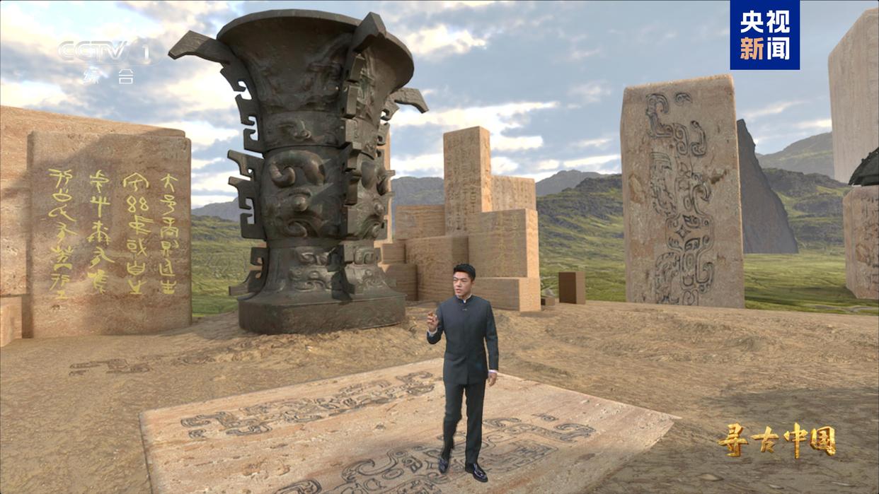 《寻古中国·寻周记》持续深化“思想+艺术+技术”融合创新,运用人工智能技术重现历史场景,对建筑遗址、青铜器、甲骨文等重要文物进行3D立体还原,让遗址、文物“活”起来;打造主持人沉浸式、互动性讲述场,与典型文物、文明元素、历史事件融合呈现,有机互动。