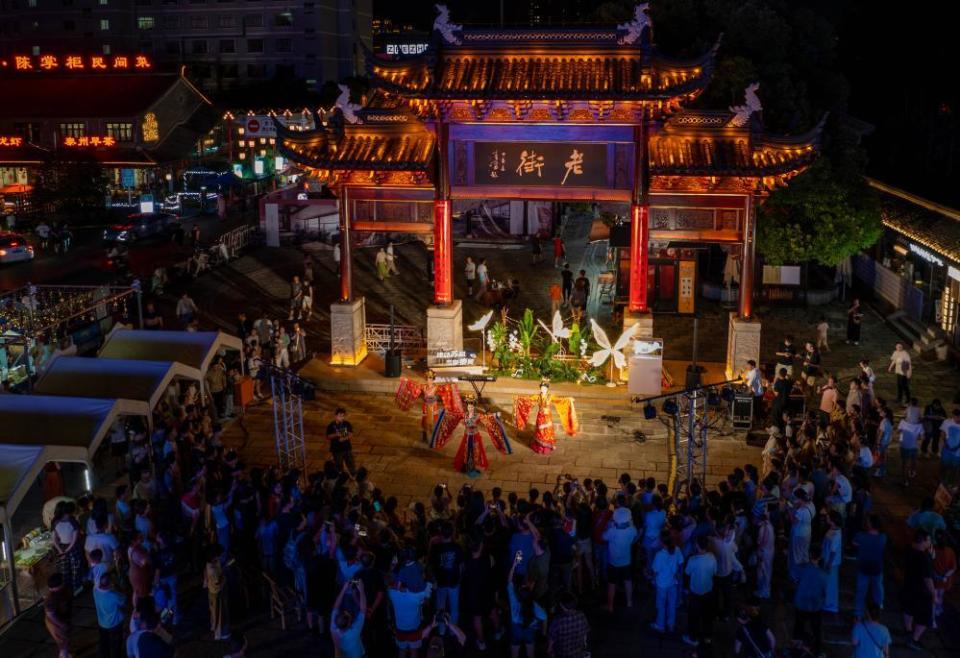 6月28日,人们在泰州市海陵区老街景区“律动苏超音你泰美”音乐节上观看表演(无人机照片)。新华社发(汤德宏 摄)