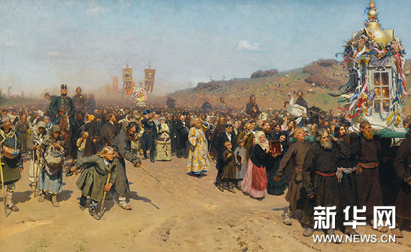 库尔斯克省的宗教行列 1881—1883年,布面油画,178厘米×285.5厘米 特列季亚科夫画廊藏