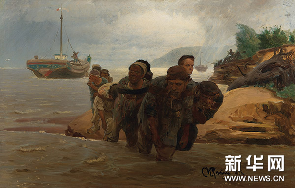 纤夫涉水 1872年,布面油画,62厘米×97厘米 特列季亚科夫画廊藏