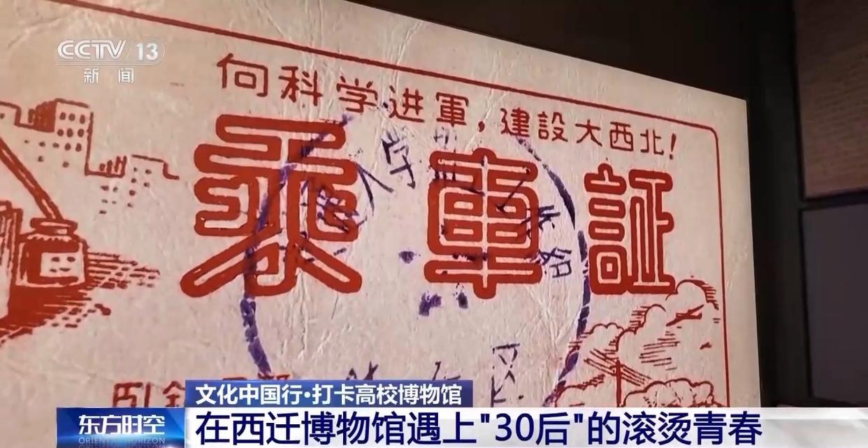 总台央视记者 高晨源:陈列柜里这张粉色的乘车证,正是交大西迁的历史见证,上面这则“向科学进军,建设大西北!”的标语异常醒目,当年交大师生正是怀揣这张肩负使命的乘车证,完成了新中国知识分子最热血的“江南北渡”。粉色,原本是温柔甜美的象征,但在这里,它却被赋予了钢铁般的信念,见证着江南文人以柔情拥抱西北苍茫的动人抉择。