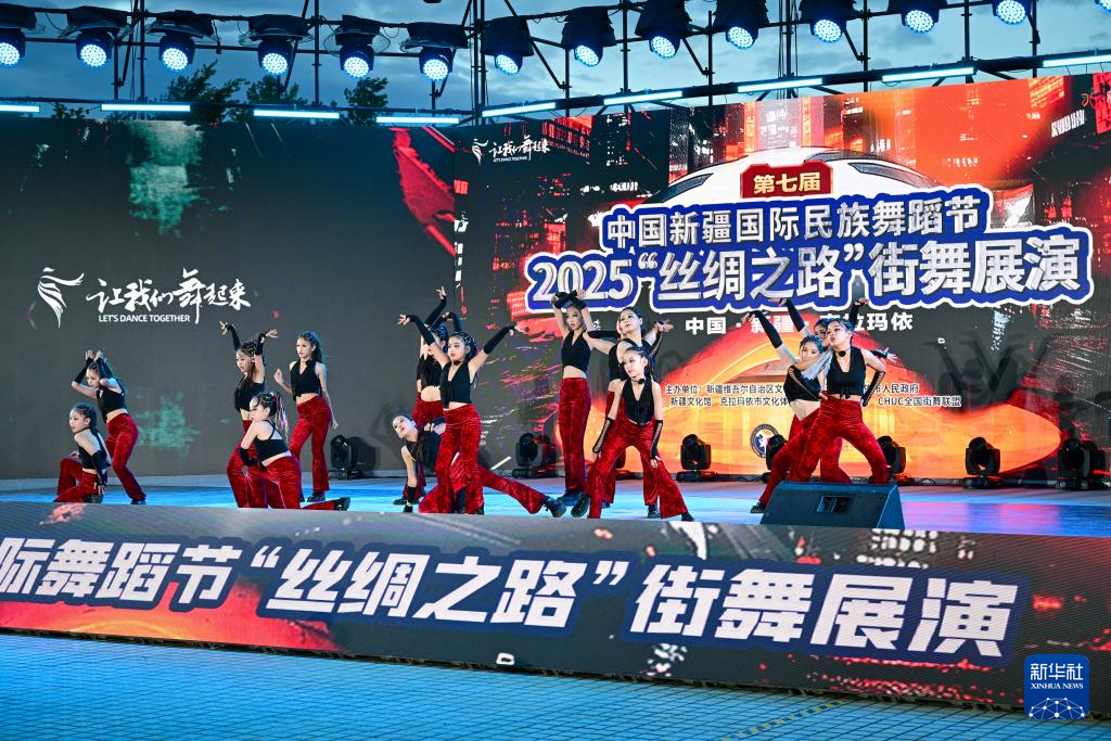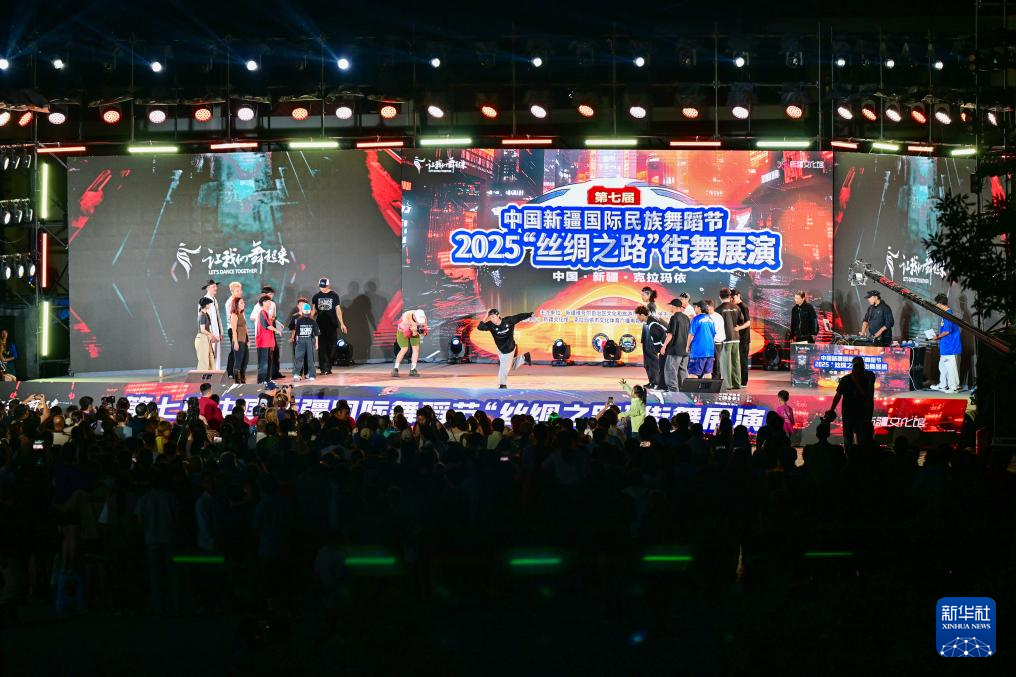 8月3日,第七届中国新疆国际民族舞蹈节配套活动之一——2025新疆“丝绸之路”街舞展演活动在新疆克拉玛依市上演。31名中外嘉宾舞者与600余名国内舞者登台献艺,为观众带来精彩表演。