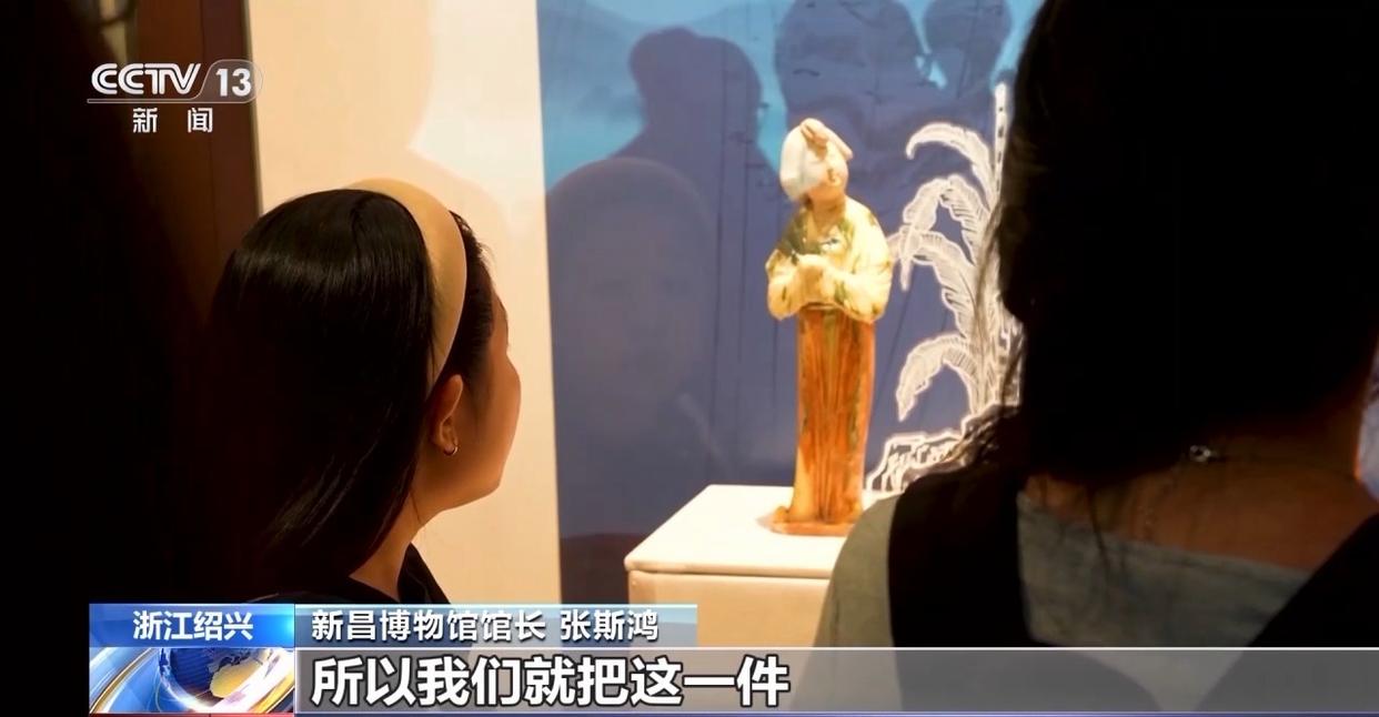 新昌博物馆馆长 张斯鸿:长安是唐诗之路中的非常重要的起点之一,所以我们就把这一件最具唐代特征的展品放在了展厅当中的第一单元。像红黄蓝白,有许多颜色,唐三彩的“三”是多的意思,多彩。